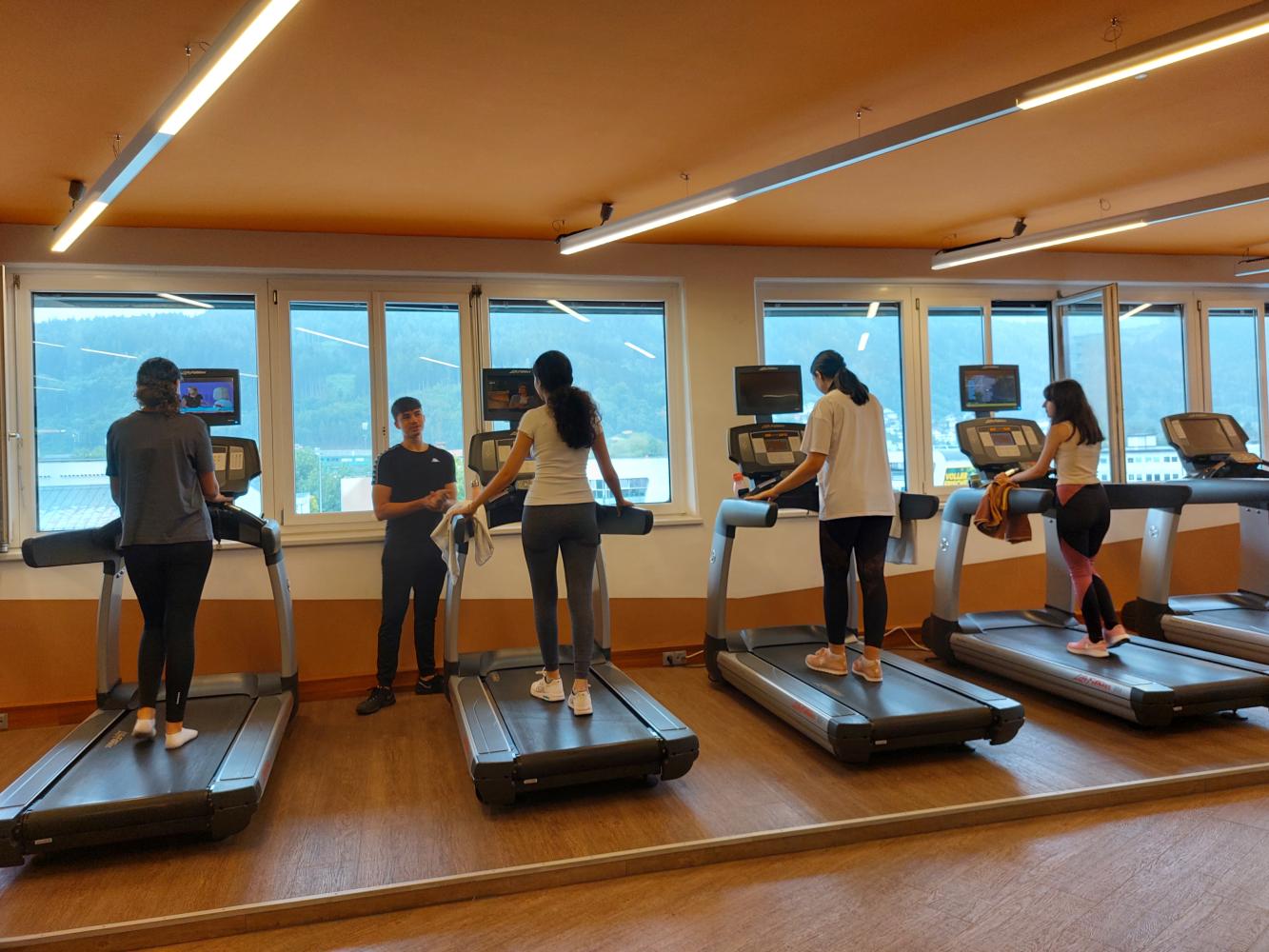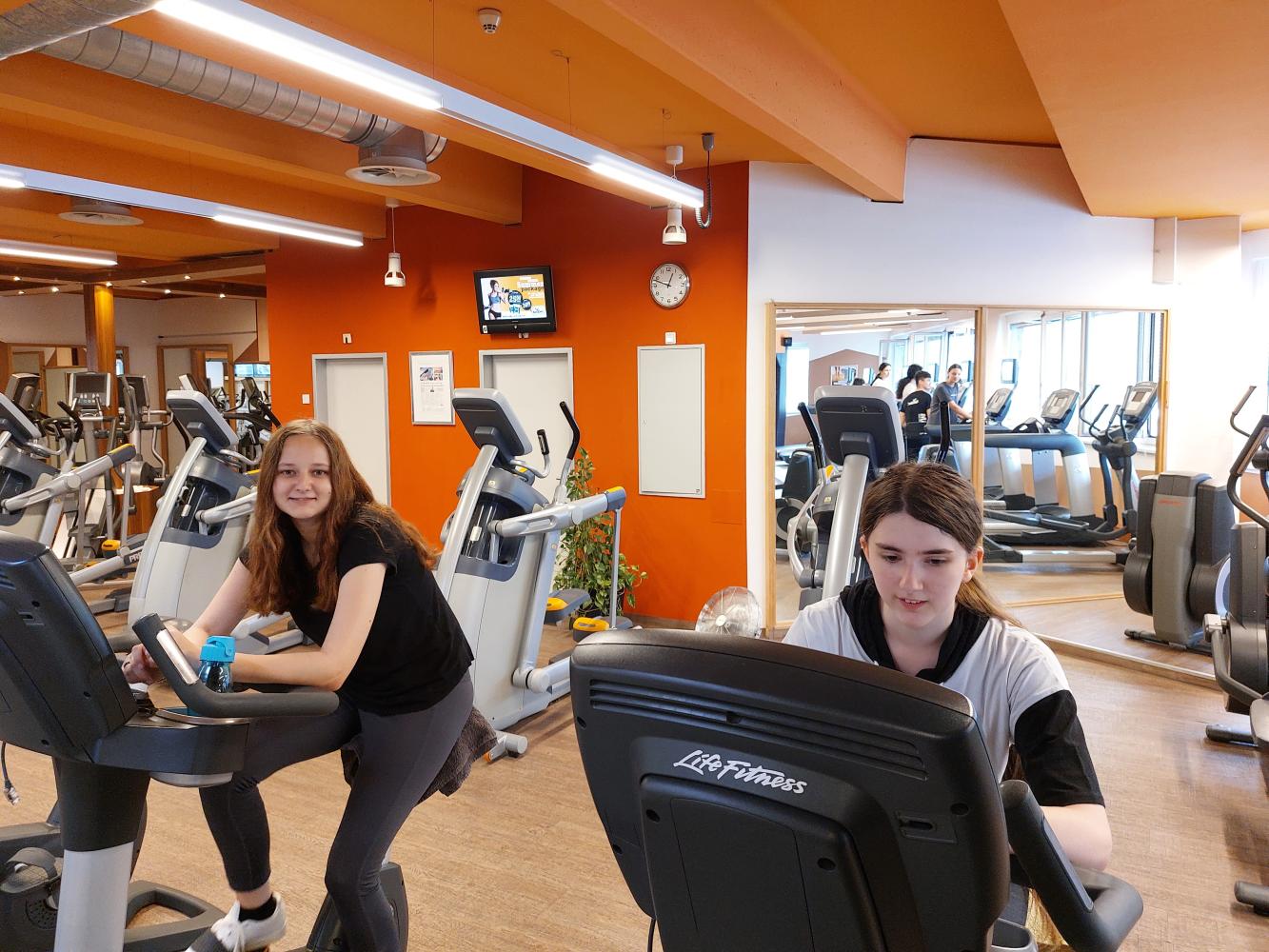 Die Mädchen der 4b waren am 22.6.2022 im Fitnessstudio West Body & Soul. Nachdem wir die langen Stiegen nach oben gingen, wurden wir vom Empfang willkommen geheißen. Wir bekamen eine ausführliche Rundtour. Nach dem Herrichten und Umziehen gingen wir nach oben zu den Kardio-Geräten, um uns aufzuwärmen. Die meisten Mädchen waren nach dem langen Aufwärmen an den Treppen oder am Laufband erschöpft. Als Nächstes gingen wir zum Kraftraum, wo fünf Stationen aufgebaut wurden. Die erste Station bestand aus zwei Box Jumps. Die zweite aus Battle Ropes, die dritte aus Schlittenschieben, die vierte aus Russion Twists. Und die allerletzte waren Sumo Squats mit Kettle Bells. Eine Übung dauerte immer eine Minute, danach hatten wir 30 Sekunden Pause, um an die nächste Station zu wechseln. Vollführten wir alle fünf Übungen, war eine Runde zu Ende. Wir machten drei Runden, zwischen denen wir je eine einminütige Pause hatten. Manche der Jugendliche hörten schon nach der zweiten Runde auf richtig mitzumachen, weil es so anstrengend war. Nach der letzten Runde zogen wir uns wieder an und gingen nachhause. Wir waren alle derselben Meinung, dass es eine sehr interessante Erfahrung war. (Tiffany & Cheyenne, 4b)