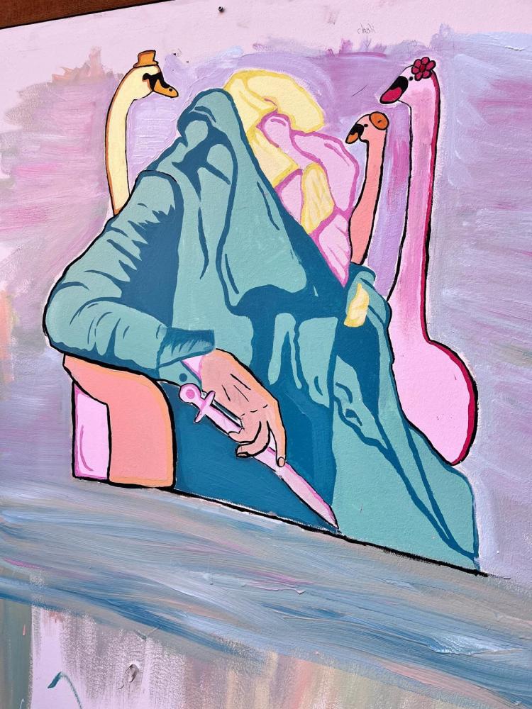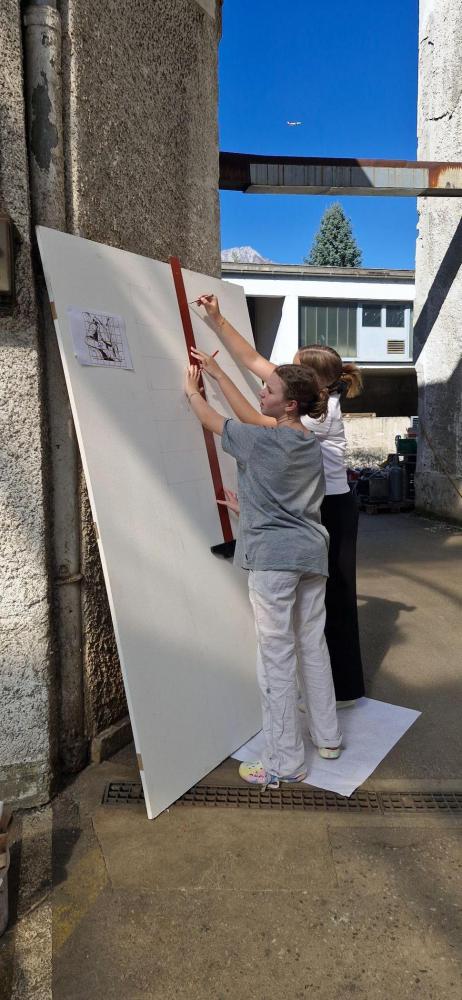 In Zusammenarbeit mit den Kunstprojekten Underbridge und Magic Carpets waren wir eingeladen, an einem Workshop mit dem kroatischen Street Art-Künstler Boris Bare teilzunehmen. Der Workshop begann an einem Samstag am Gelände St.Bartlmä in Innsbruck, sodass dort nur die besonders kunstinteressierten Schülerinnen teilnahmen, nämlich die, die auch am Wochenende von Kunst nicht genug bekommen können. Julia, Nahelle, Emma und Yasmin aus der 4a lernten dabei, wie man Bildentwürfe auf ein großes Format und an die Wand bringt, welche Techniken und Materialien dabei eingesetzt werden können und dass es sehr viel Spaß macht, sich auf Englisch mit einem Künstler unterhalten zu können.